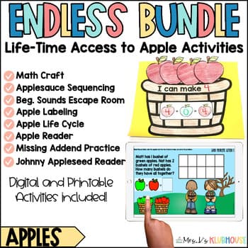 You can also check out this endless bundle of apple-themed resources for your kindergarten and first grade classroom! Endless bundles are awesome because any item added to the storefront will automatically be added to the bundle at no cost to you!