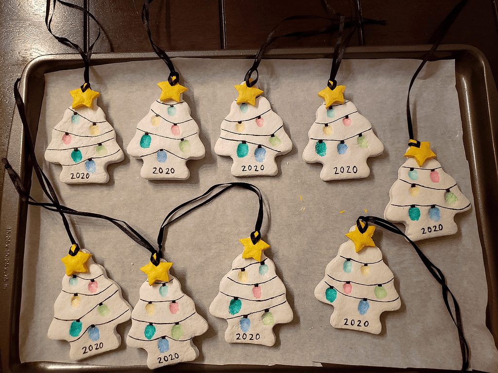 Salt Dough Fingerprint Tree- These trees are such an adorable keepsake. One year, I did a version of this ornament. I cut out the trees with a cookie cutter ahead of time. Then, I pulled students back to place their fingerprints on the tree and then took them home to bake.