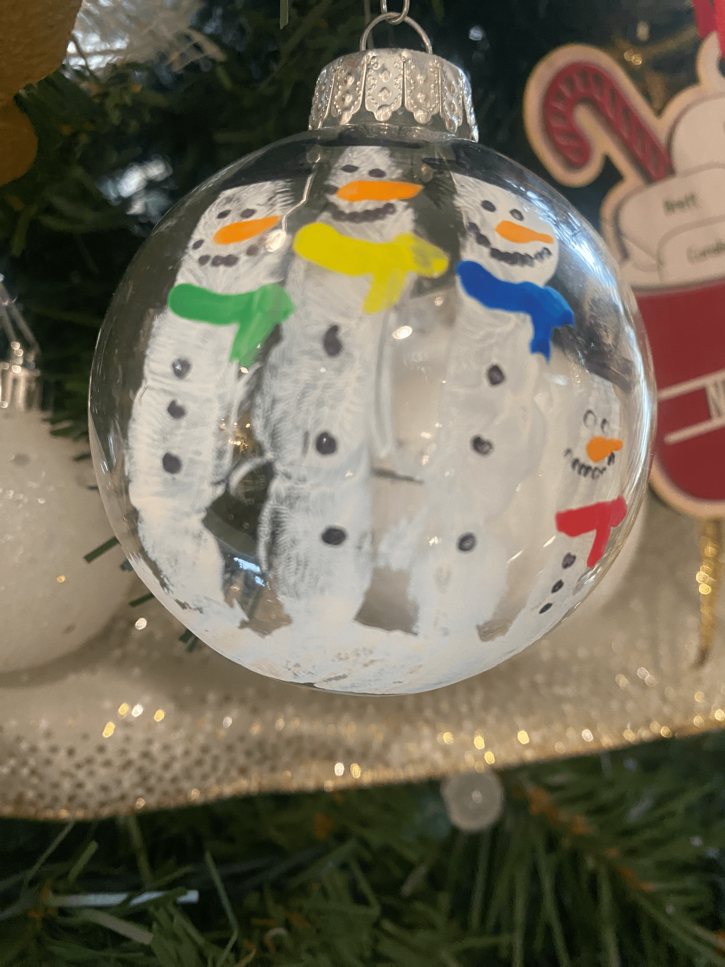 Snowman Hands- Paint your students fingers and the top of their palm (this creates the snowy effect on the bottom). Once dry, paint the buttons, hat, scarf, nose, eyes, and mouth. Make sure to use a plastic ornament.