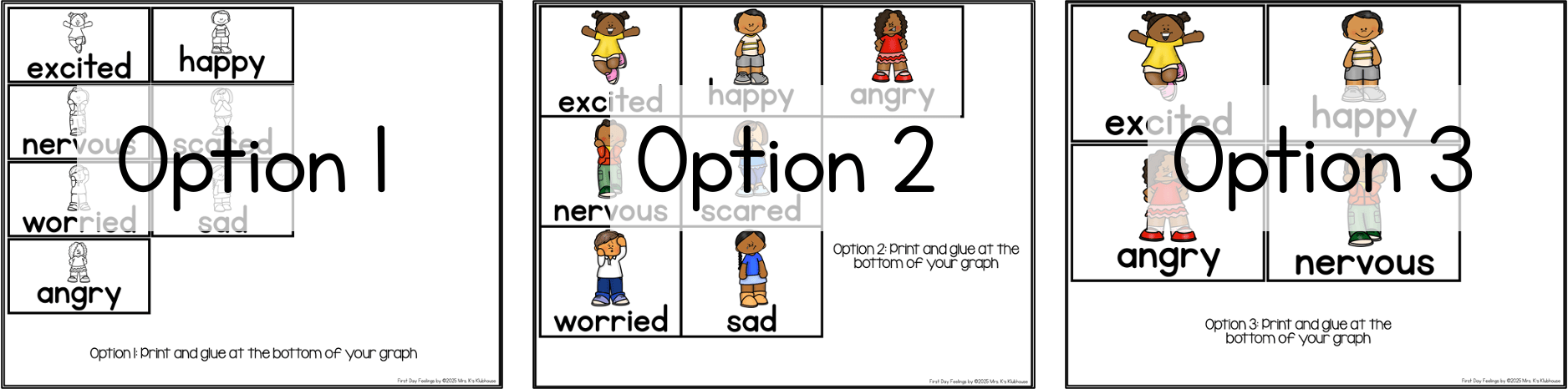Just like the title options, there are three emotion category cards for your graph. These will go on the bottom of your graph. All these cards come in color and black and white.