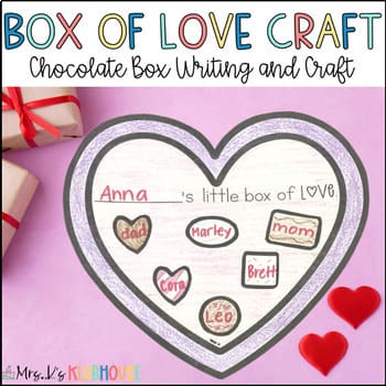 Are you looking for a cute and fun writing craft for February? Students will love this “Box of Love” writing craft where they can write the things they love on a piece of chocolate and glue it on their chocolate box.